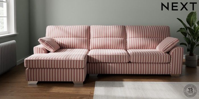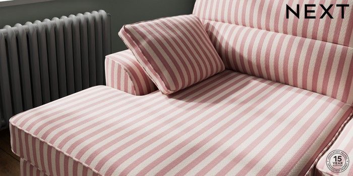 7.3.1 Buy Stamford Highback Large Sofa Chaise - Left Hand Bold Chenille Stripe Dark Pink Large Square Angle - Chrome Metal from the Next UK online shop Click here to use our accessible website