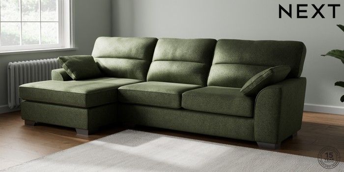 7.3.1 Buy Stamford Highback Large Sofa Chaise - Left Hand Boucle Chenille Dark Moss Green Large Square Angle - Gunmetal from the Next UK online shop Click here to use our accessible website