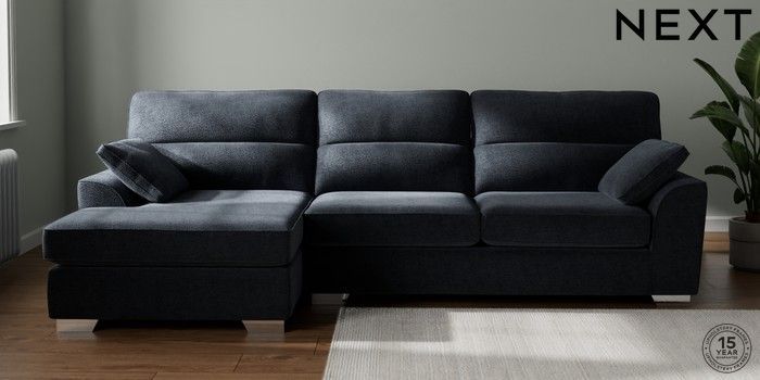 7.2.10 Buy Stamford Highback Large Sofa Chaise - Left Hand Boucle Chenille Dark Slate Blue Large Square Angle - Chrome Metal from the Next UK online shop Click here to use our accessible website