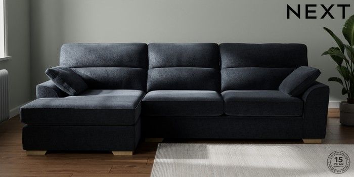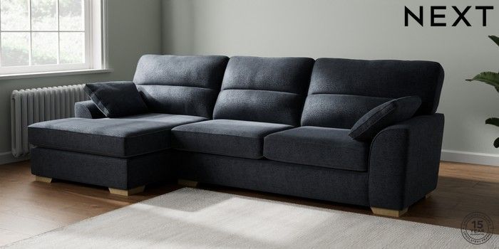 7.2.10 Buy Stamford Highback Large Sofa Chaise - Left Hand Boucle Chenille Dark Slate Blue Large Square Angle - Light from the Next UK online shop Click here to use our accessible website
