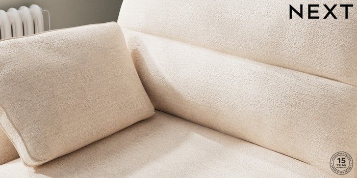7.2.10 Buy Stamford Highback Large Sofa Chaise - Left Hand Boucle Chenille Oyster Large Square Angle - Brushed Brass from the Next UK online shop Click here to use our accessible website