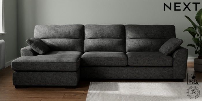 7.2.10 Buy Stamford Highback Large Sofa Chaise - Left Hand Boucle Weave Easy Clean Charcoal Grey Large Square Angle - Dark from the Next UK online shop Click here to use our accessible website