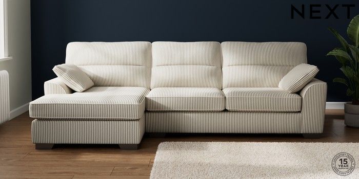 7.3.1 Buy Stamford Highback Large Sofa Chaise - Left Hand Chenille Stripe Moss Green Large Square Angle - Gunmetal from the Next UK online shop Click here to use our accessible website