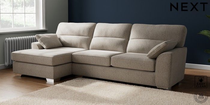 7.2.10 Buy Stamford Highback Large Sofa Chaise - Left Hand Chunky Boucle Easy Clean Dove Large Square Angle - Chrome Metal from the Next UK online shop Click here to use our accessible website