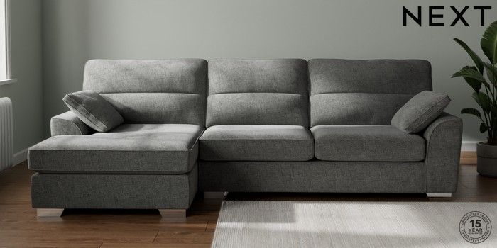 7.2.10 Buy Stamford Highback Large Sofa Chaise - Left Hand Chunky Chenille Dark Grey Large Square Angle - Chrome Metal from the Next UK online shop Click here to use our accessible website