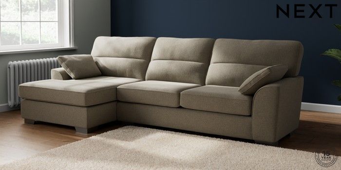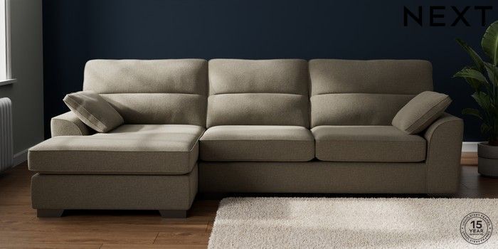 7.3.1 Buy Stamford Highback Large Sofa Chaise - Left Hand Chunky Marl Light Olive Green Large Square Angle - Gunmetal from the Next UK online shop Click here to use our accessible website