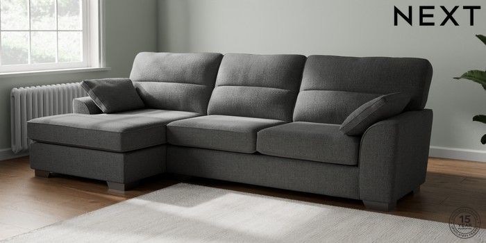 7.2.10 Buy Stamford Highback Large Sofa Chaise - Left Hand Chunky Texture Dark Grey Large Square Angle - Gunmetal from the Next UK online shop Click here to use our accessible website