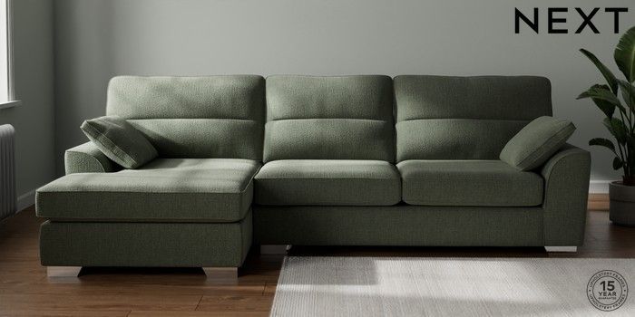 7.2.10 Buy Stamford Highback Large Sofa Chaise - Left Hand Chunky Texture Mid Forest Green Large Square Angle - Chrome Metal from the Next UK online shop Click here to use our accessible website