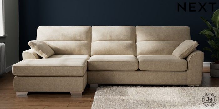 7.2.10 Buy Stamford Highback Large Sofa Chaise - Left Hand Chunky Weave Cream Large Square Angle - Chrome Metal from the Next UK online shop Click here to use our accessible website