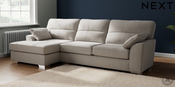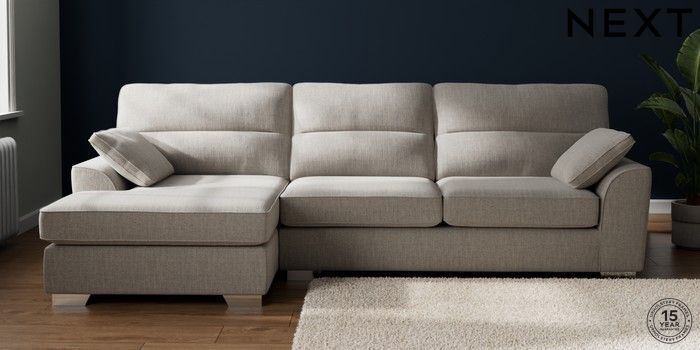 7.2.10 Buy Stamford Highback Large Sofa Chaise - Left Hand Chunky Weave Dove Grey Large Square Angle - Chrome Metal from the Next UK online shop Click here to use our accessible website