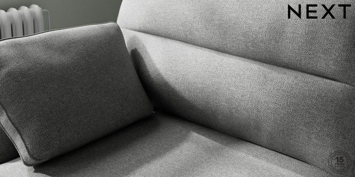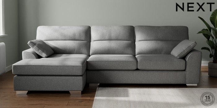 7.2.10 Buy Stamford Highback Large Sofa Chaise - Left Hand Chunky Weave Mid Grey Large Square Angle - Chrome Metal from the Next UK online shop Click here to use our accessible website