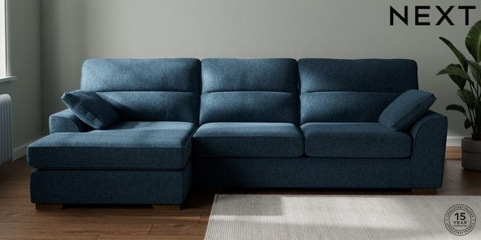 7.2.10 Buy Stamford Highback Large Sofa Chaise - Left Hand Cotswold Chenille Dark Blue Large Square Angle - Mid from the Next UK online shop Click here to use our accessible website