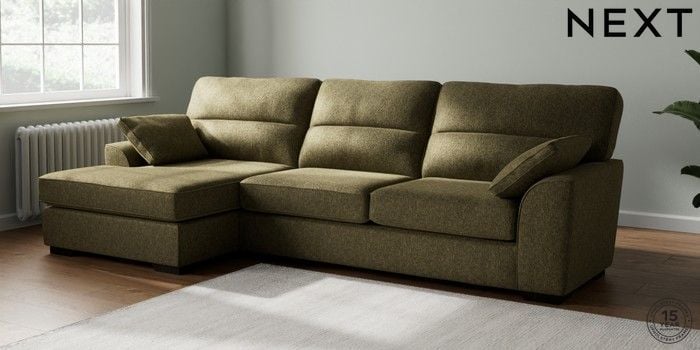 7.2.10 Buy Stamford Highback Large Sofa Chaise - Left Hand Cotswold Chenille Dark Green Large Square Angle - Dark from the Next UK online shop Click here to use our accessible website