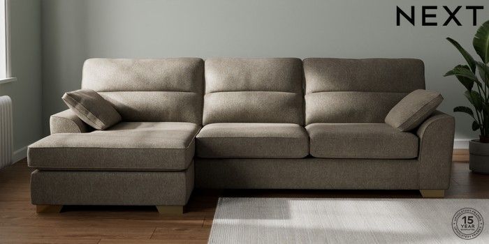 7.2.6 Buy Stamford Highback Large Sofa Chaise - Left Hand Cotswold Chenille Mid Mink Brown Large Square Angle - Brushed Brass from the Next UK online shop Click here to use our accessible website