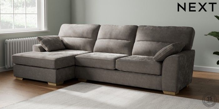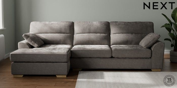 7.2.10 Buy Stamford Highback Large Sofa Chaise - Left Hand Distressed Velour French Grey Large Square Angle - Light from the Next UK online shop Click here to use our accessible website