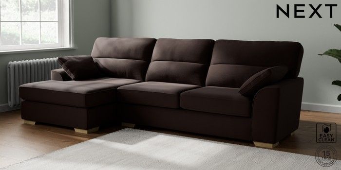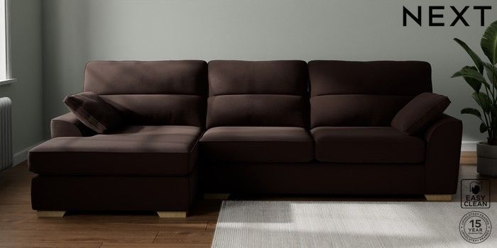 7.2.10 Buy Stamford Highback Large Sofa Chaise - Left Hand Fine Chenille Easy Clean Chocolate Brown Large Square Angle - Light from the Next UK online shop Click here to use our accessible website