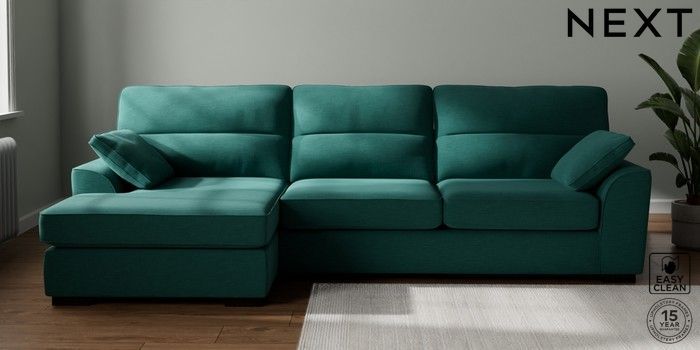 7.2.10 Buy Stamford Highback Large Sofa Chaise - Left Hand Fine Chenille Easy Clean Dark Juniper Green Large Square Angle - Dark from the Next UK online shop Click here to use our accessible website