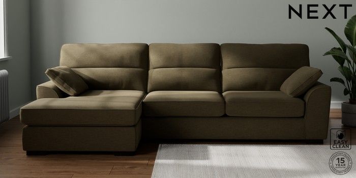 7.2.10 Buy Stamford Highback Large Sofa Chaise - Left Hand Fine Chenille Easy Clean Dark Moss Green Large Square Angle - Dark from the Next UK online shop Click here to use our accessible website