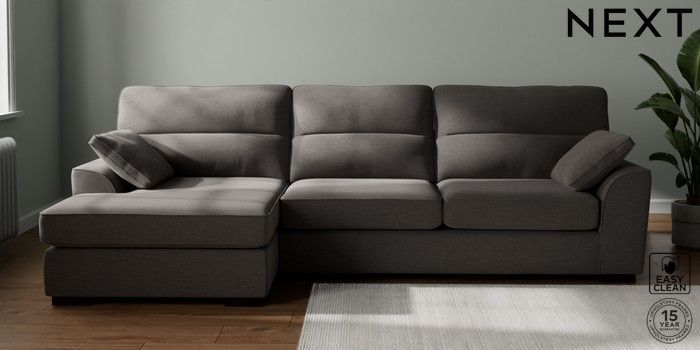 7.2.10 Buy Stamford Highback Large Sofa Chaise - Left Hand Fine Chenille Easy Clean Dark Smoke Grey Large Square Angle - Dark from the Next UK online shop Click here to use our accessible website