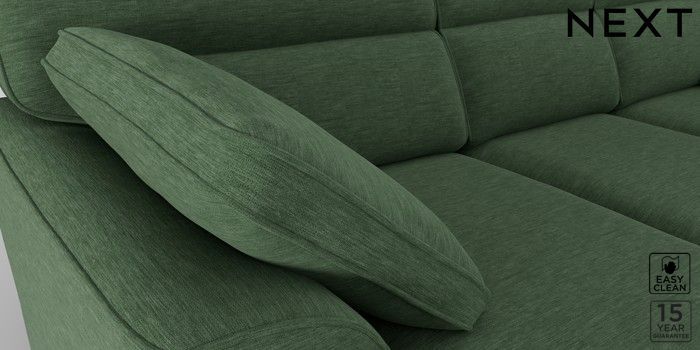 6.12.1 Buy Stamford Highback Large Sofa Chaise - Left Hand Fine Chenille Easy Clean Mid Khaki Green Large Square Angle - Brushed Brass from the Next UK online shop Click here to use our accessible website