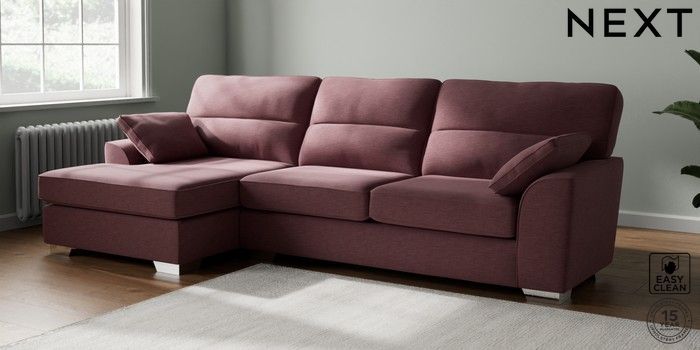 7.3.1 Buy Stamford Highback Large Sofa Chaise - Left Hand Fine Chenille Easy Clean Mid Mulberry Purple Large Square Angle - Chrome Metal from the Next UK online shop Click here to use our accessible website