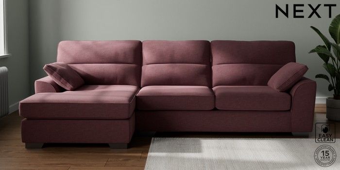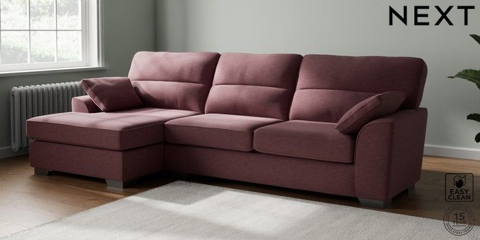 7.3.1 Buy Stamford Highback Large Sofa Chaise - Left Hand Fine Chenille Easy Clean Mid Mulberry Purple Large Square Angle - Gunmetal from the Next UK online shop Click here to use our accessible website