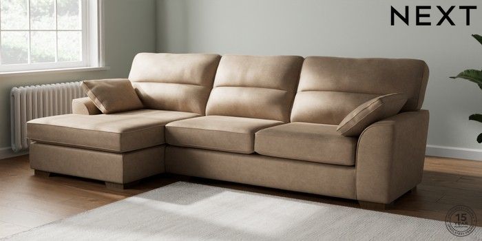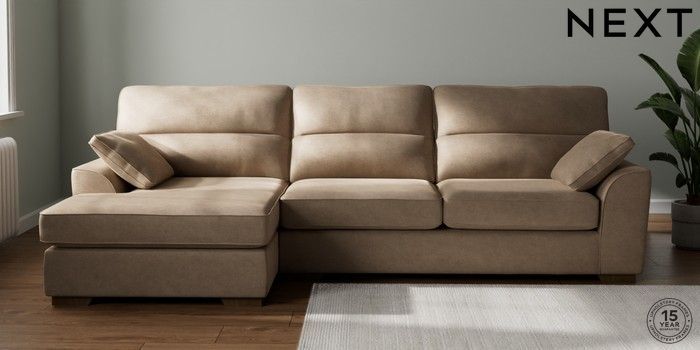7.2.10 Buy Stamford Highback Large Sofa Chaise - Left Hand Luxe Chenille Mid Camel Beige Large Square Angle - Mid from the Next UK online shop Click here to use our accessible website