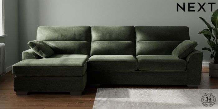 7.2.6 Buy Stamford Highback Large Sofa Chaise - Left Hand Luxe Chenille Mid Green Large Square Angle - Gunmetal from the Next UK online shop Click here to use our accessible website