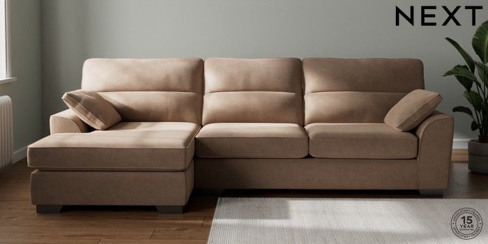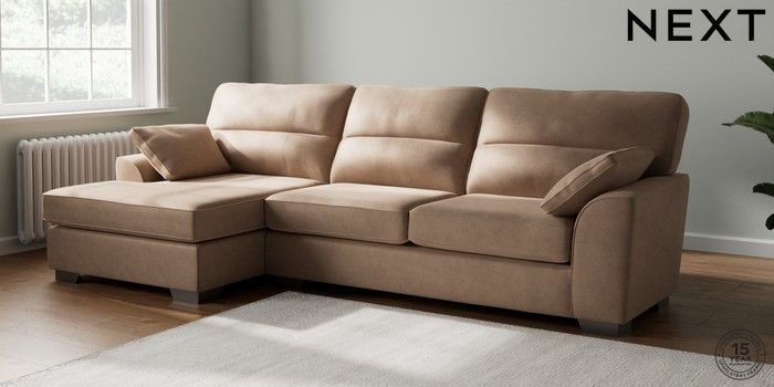 7.2.10 Buy Stamford Highback Large Sofa Chaise - Left Hand Luxe Chenille Mid Natural Large Square Angle - Gunmetal from the Next UK online shop Click here to use our accessible website
