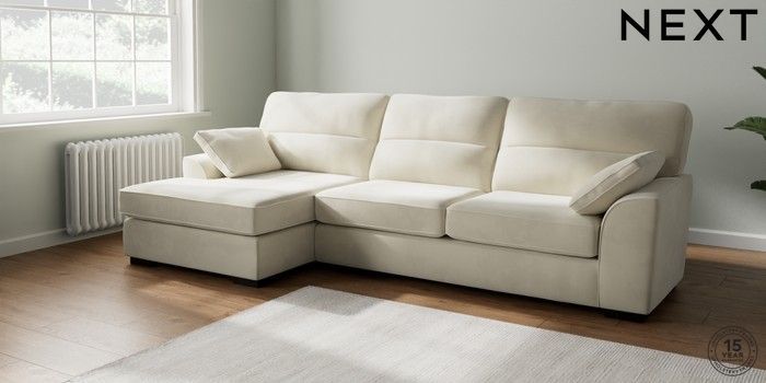 7.0.3 Buy Stamford Highback Large Sofa Chaise - Left Hand Luxe Chenille Oyster Large Square Angle - Dark from the Next UK online shop Click here to use our accessible website