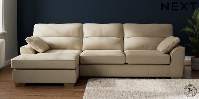 7.2.10 Buy Stamford Highback Large Sofa Chaise - Left Hand Natural Mix Light Natural Large Square Angle - Brushed Brass from the Next UK online shop Click here to use our accessible website