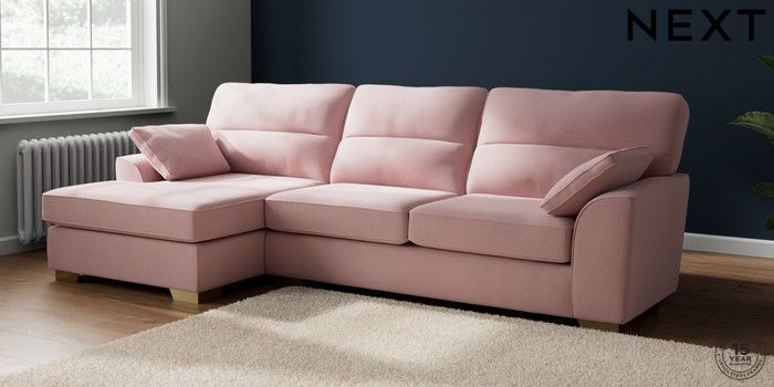 6.12.1 Buy Stamford Highback Large Sofa Chaise - Left Hand Natural Mix Light Rose Pink Large Square Angle - Brushed Brass from the Next UK online shop Click here to use our accessible website
