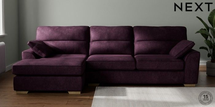 7.2.10 Buy Stamford Highback Large Sofa Chaise - Left Hand Plush Chenille Dark Plum Purple Large Square Angle - Light from the Next UK online shop Click here to use our accessible website