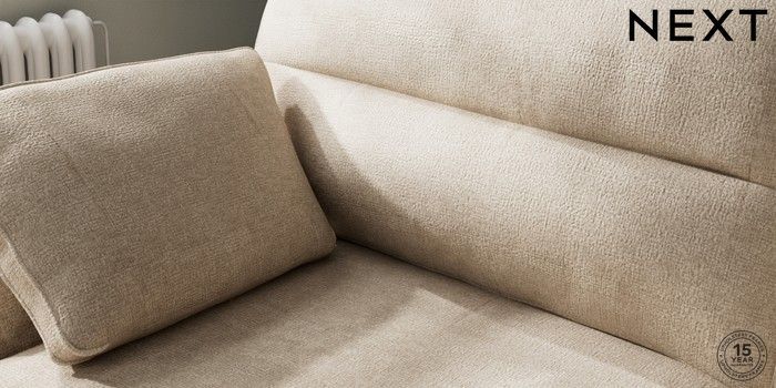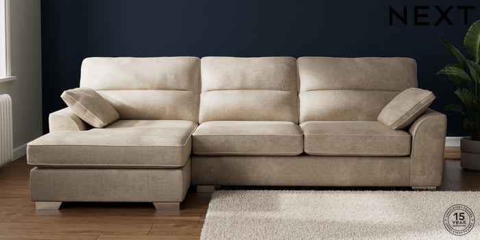 7.2.10 Buy Stamford Highback Large Sofa Chaise - Left Hand Plush Chenille Light Natural Large Square Angle - Chrome Metal from the Next UK online shop Click here to use our accessible website