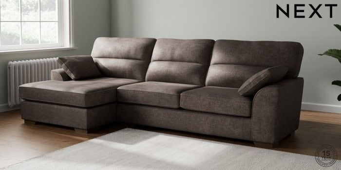 7.2.10 Buy Stamford Highback Large Sofa Chaise - Left Hand Plush Chenille Mink Brown Large Square Angle - Mid from the Next UK online shop Click here to use our accessible website