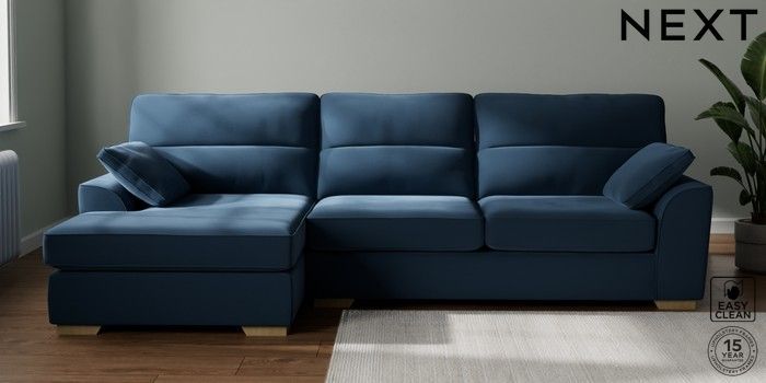 7.2.10 Buy Stamford Highback Large Sofa Chaise - Left Hand Plush Velvet Easy Clean Airforce Blue Large Square Angle - Light from the Next UK online shop Click here to use our accessible website