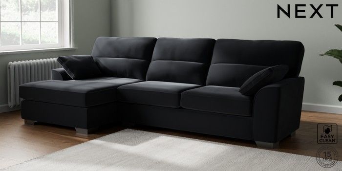 6.12.1 Buy Stamford Highback Large Sofa Chaise - Left Hand Plush Velvet Easy Clean Charcoal Grey Large Square Angle - Gunmetal from the Next UK online shop Click here to use our accessible website