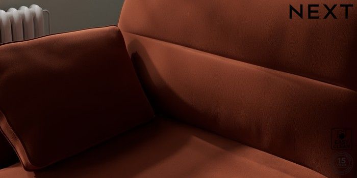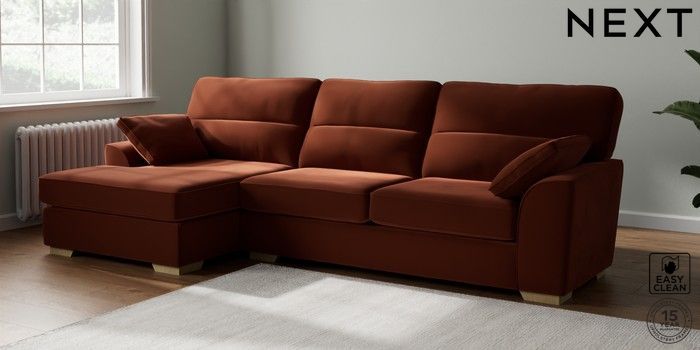 7.2.10 Buy Stamford Highback Large Sofa Chaise - Left Hand Plush Velvet Easy Clean Ginger Orange Large Square Angle - Light from the Next UK online shop Click here to use our accessible website