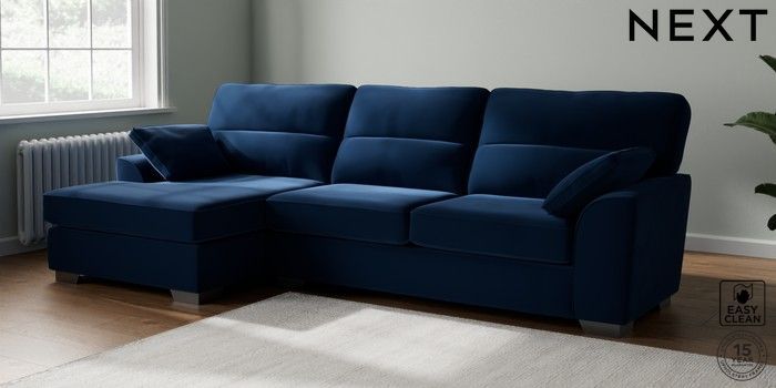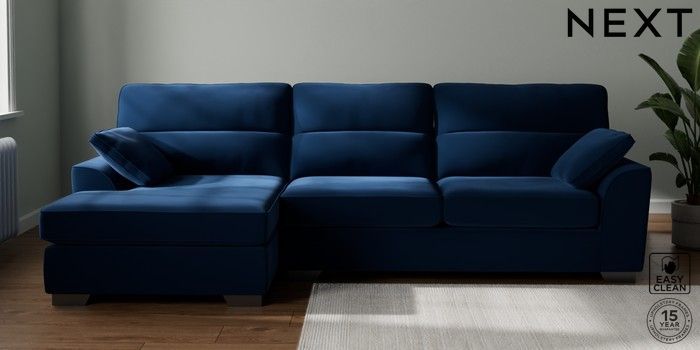 7.3.1 Buy Stamford Highback Large Sofa Chaise - Left Hand Plush Velvet Easy Clean Navy Blue Large Square Angle - Gunmetal from the Next UK online shop Click here to use our accessible website