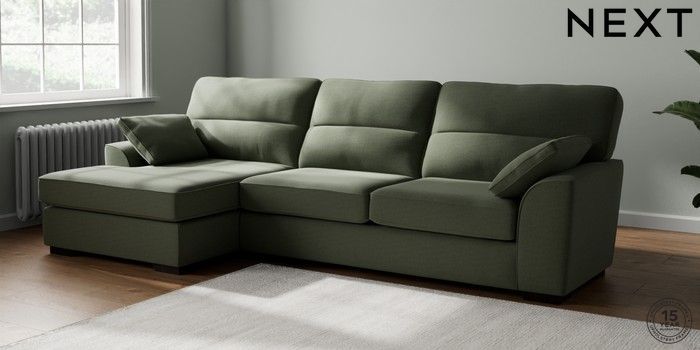 7.2.10 Buy Stamford Highback Large Sofa Chaise - Left Hand Relaxed Linen Look Dark Green Large Square Angle - Dark from the Next UK online shop Click here to use our accessible website