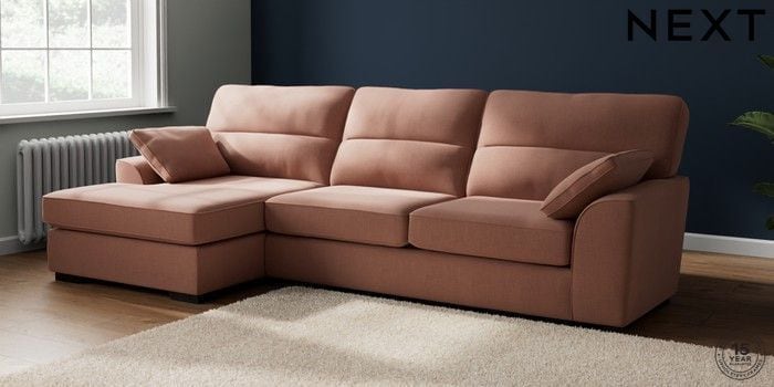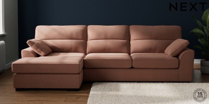 7.2.10 Buy Stamford Highback Large Sofa Chaise - Left Hand Relaxed Linen Look Light Rust Brown Large Square Angle - Dark from the Next UK online shop Click here to use our accessible website
