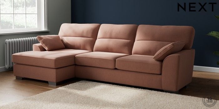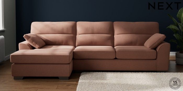 7.2.10 Buy Stamford Highback Large Sofa Chaise - Left Hand Relaxed Linen Look Light Rust Brown Large Square Angle - Gunmetal from the Next UK online shop Click here to use our accessible website