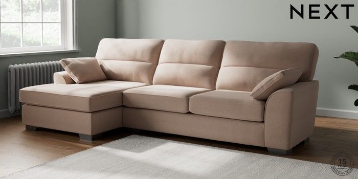 6.12.13 Buy Stamford Highback Large Sofa Chaise - Left Hand Relaxed Linen Look Mid Natural Large Square Angle - Gunmetal from the Next UK online shop Click here to use our accessible website