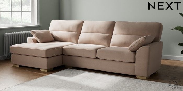 7.2.10 Buy Stamford Highback Large Sofa Chaise - Left Hand Relaxed Linen Look Mid Natural Large Square Angle - Light from the Next UK online shop Click here to use our accessible website