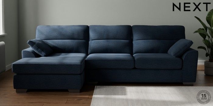 7.2.6 Buy Stamford Highback Large Sofa Chaise - Left Hand Ripple Chenille Dark Blue Large Square Angle - Gunmetal from the Next UK online shop Click here to use our accessible website