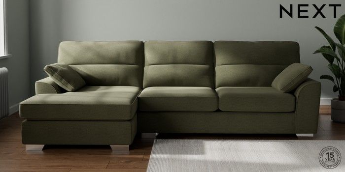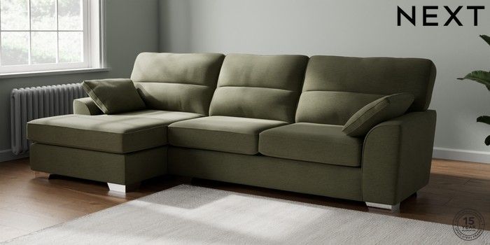 7.2.10 Buy Stamford Highback Large Sofa Chaise - Left Hand Ripple Chenille Mid Moss Green Large Square Angle - Chrome Metal from the Next UK online shop Click here to use our accessible website