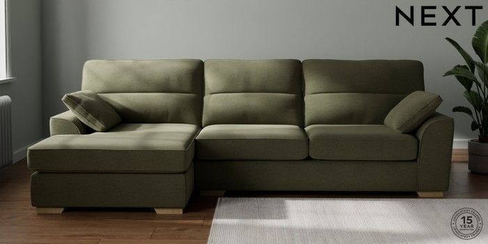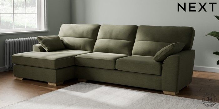 7.2.10 Buy Stamford Highback Large Sofa Chaise - Left Hand Ripple Chenille Mid Moss Green Large Square Angle - Light from the Next UK online shop Click here to use our accessible website