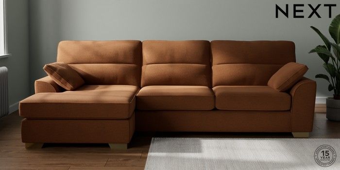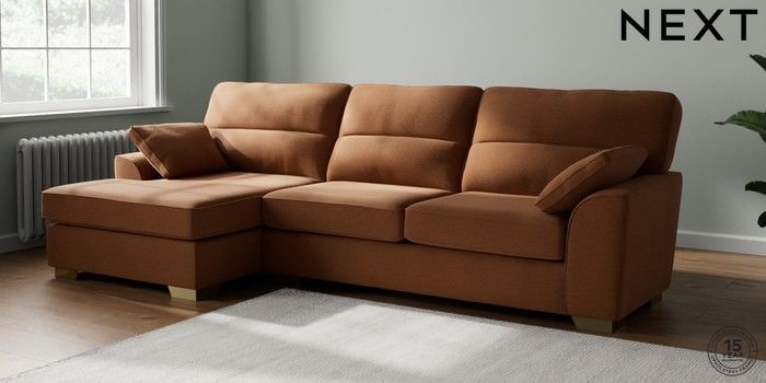 7.2.10 Buy Stamford Highback Large Sofa Chaise - Left Hand Ripple Chenille Mid Rust Brown Large Square Angle - Brushed Brass from the Next UK online shop Click here to use our accessible website