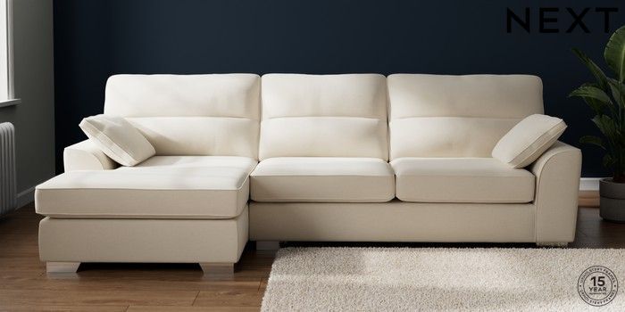 7.2.10 Buy Stamford Highback Large Sofa Chaise - Left Hand Ripple Chenille Oyster Large Square Angle - Chrome Metal from the Next UK online shop Click here to use our accessible website