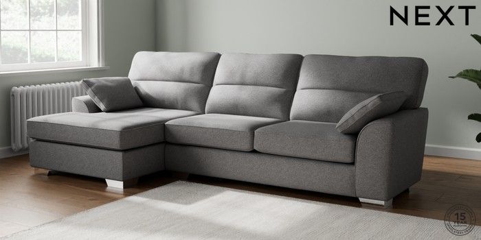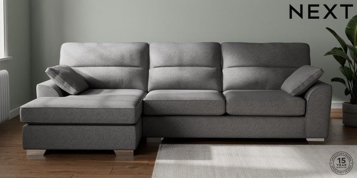 7.2.10 Buy Stamford Highback Large Sofa Chaise - Left Hand Studio Chenille Mid Grey Large Square Angle - Chrome Metal from the Next UK online shop Click here to use our accessible website